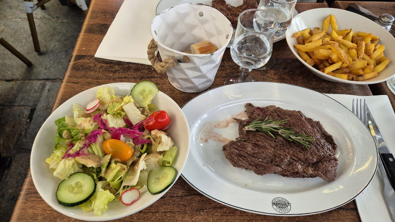 전날 퐁듀를 먹은 곳에서 스테이크를 먹습니다...