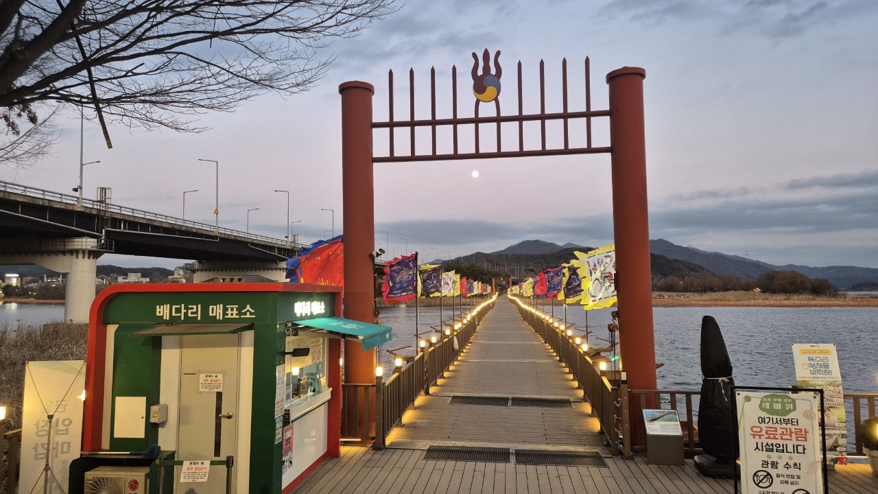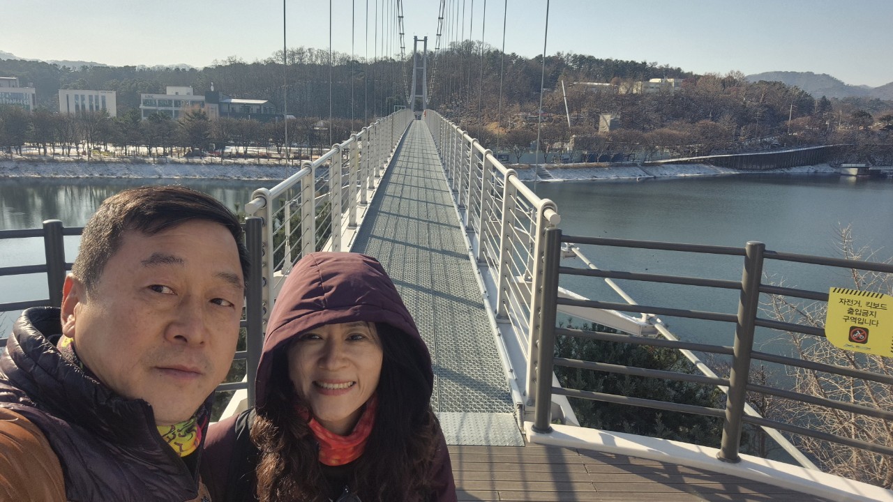 한바퀴 돌아보려고 출렁다리를 건넘니다